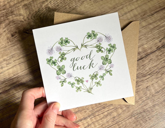 Good Luck Clover Card, Botanical Lucky Watercolour Illustrated Mini Greetings Card