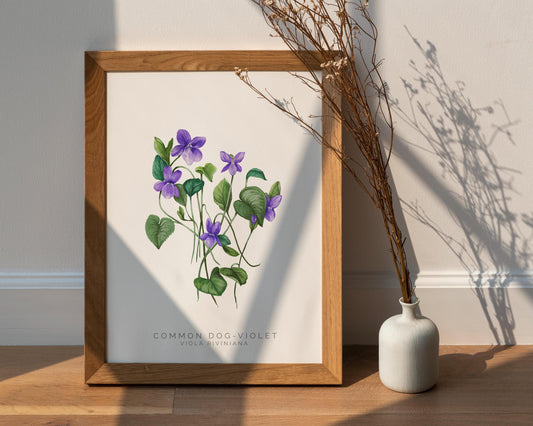 Dog Violet Watercolour Print, County Flower Of Lincolnshire Botanical Floral Poster, Wildflower Art Illustration A4 Giclee Print