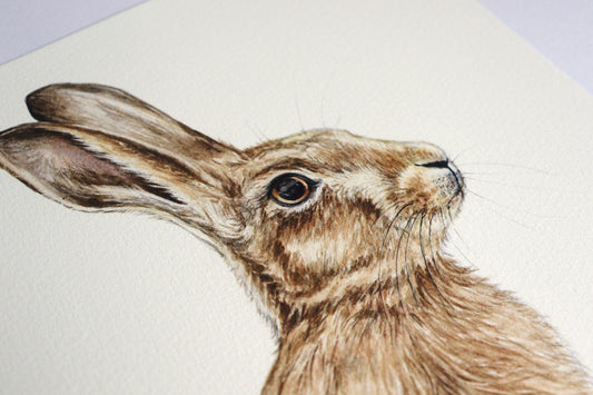 Watercolour Horace Hare Print, Woodland Animal Minimal Painting, Nursery Artwork, Square Fine Art Print 8x8" 10x10" A4