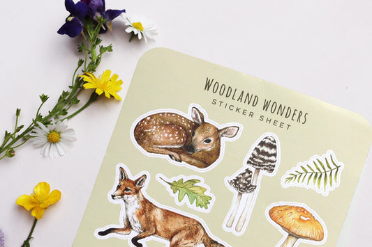 Woodland Wonders Sticker Sheet, Autumnal Scrapbooking, Watercolour Journal Stickers A6