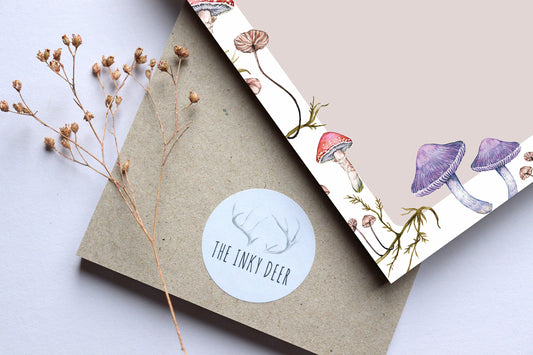Pink Mushies A5 Notepad, Watercolour Illustrated Mushroom Fungi Printed Paper Notes, Stationery Gift