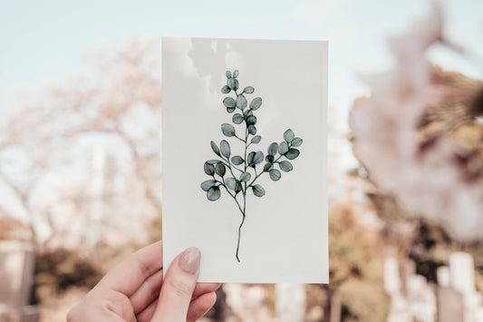Eucalyptus Print, Plant Illustration, Botanical Floral Fine Art 5x7" Minimalist Print - Hand finished