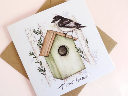New Home Bird Greetings Card, Moving House Card, First Home, Watercolour Illustrated Card