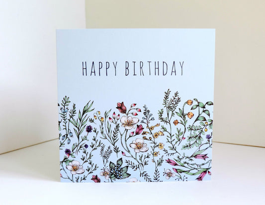 Botanical Birthday Card, Floral Watercolour Illustrated Wildflower Greetings Card A6