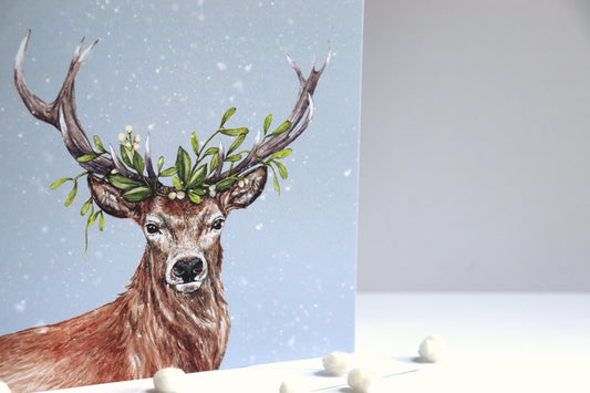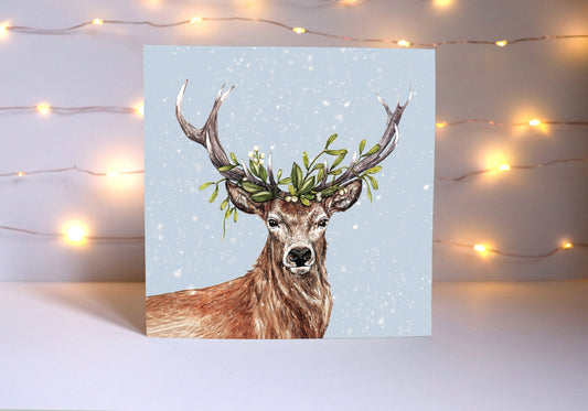 Winter Stag Christmas Card, Woodland Animal Illustrated Watercolour Deer Friend Greetings Card