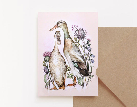 Runner Ducks Greetings Card Floral Birthday Card for Her A6