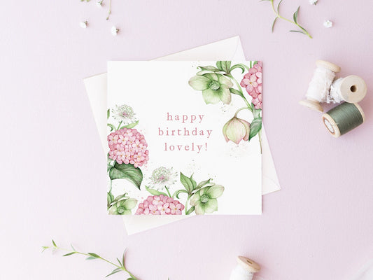 Vintage Florals Hellebore Hydrangea Personalised Card for Her Birthday Card
