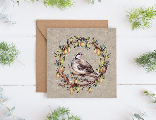 Partridge Christmas Card, Partridge In A Pear Tree Card, Xmas Bird Greetings Card