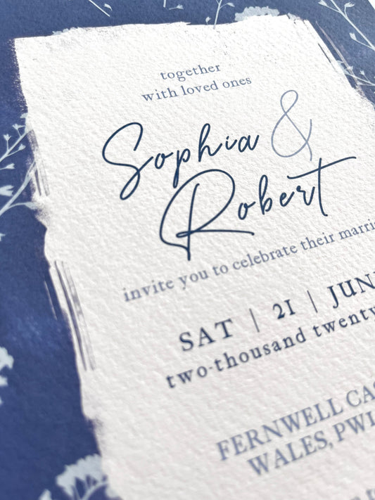 Forget Me Not Wedding Invitation, Cyanotype Print Botanical Blue White Floral Wedding Invites A5 or 5x7"