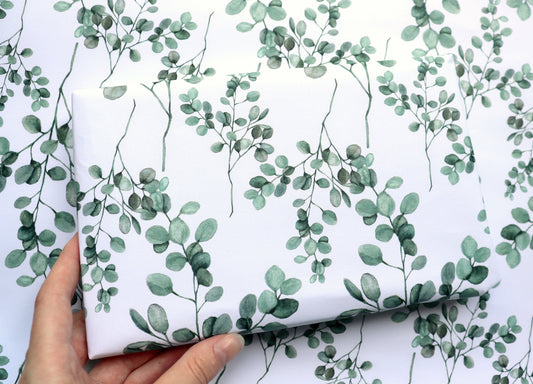 Watercolour Eucalyptus Wrapping Paper, Christmas Gift Wrap, Botanical Gift Paper, Leaf Pattern Gift Wrap Sheets
