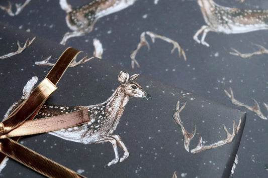 Christmas Deer Wrapping Paper, Snowy Deer Antlers Pattern, Leaping Deer Gift Wrap Sheets
