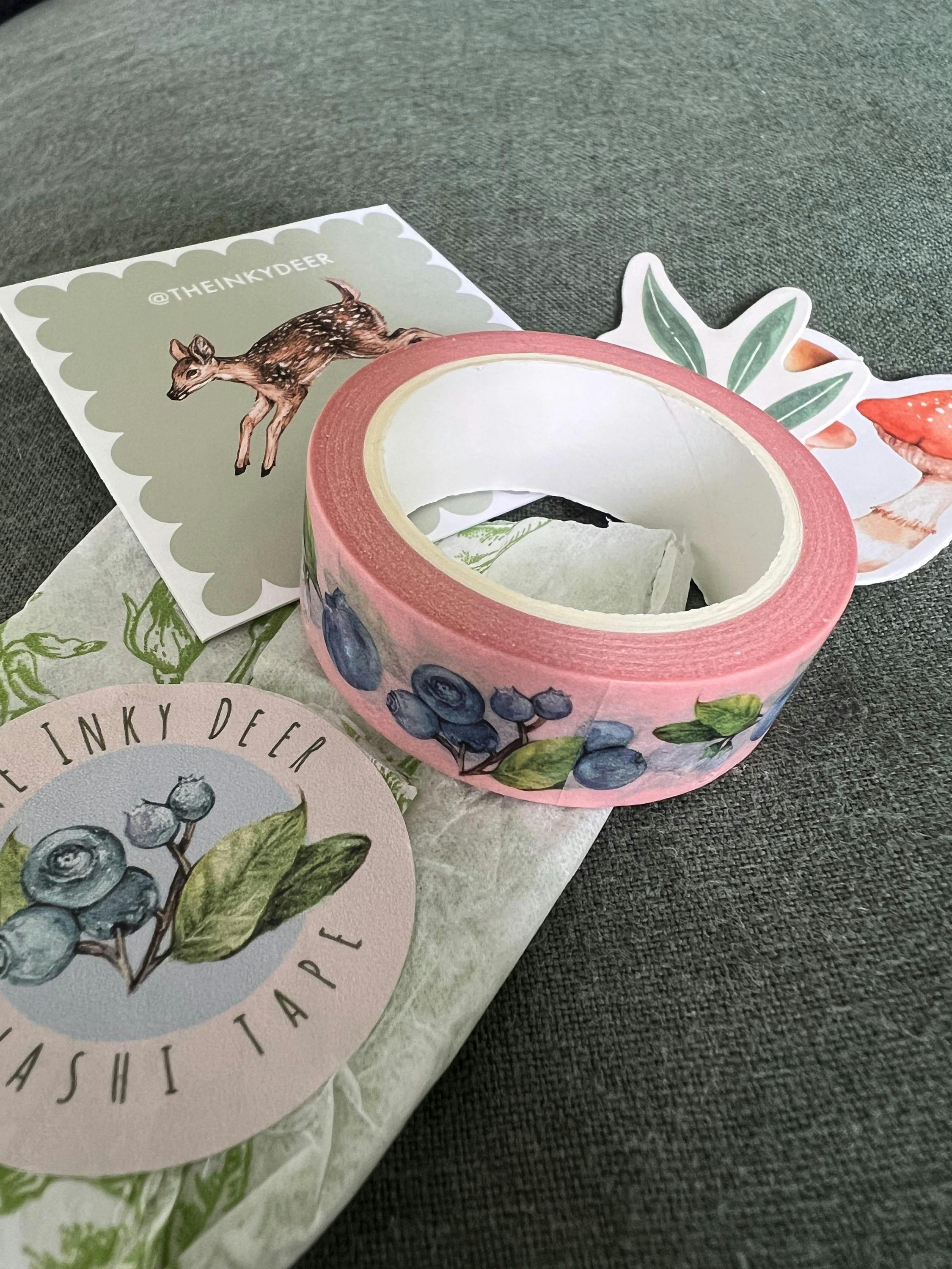 * N E W * Adorable blueberry washi tape featuring my hand painted watercolour design printed onto a peach pink background 🫐