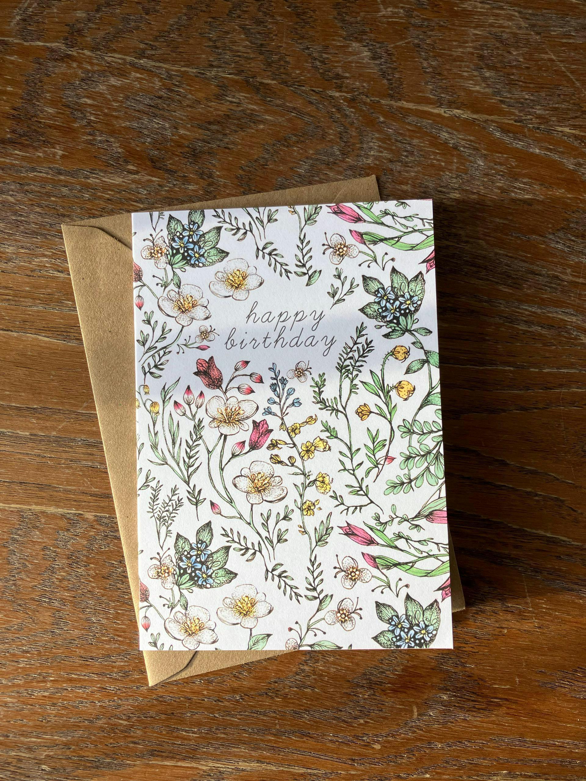 Botanical Birthday Card, Floral Watercolour Illustrated Wildflower Greetings Card A6